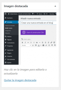 En caso de error, también tenemos ahí una opción para «Quitar la imagen destacada», que no borra la imagen sino que solo le quita la asignación como tal, de forma que seguirá estando disponible en la biblioteca de medios de WordPress.
