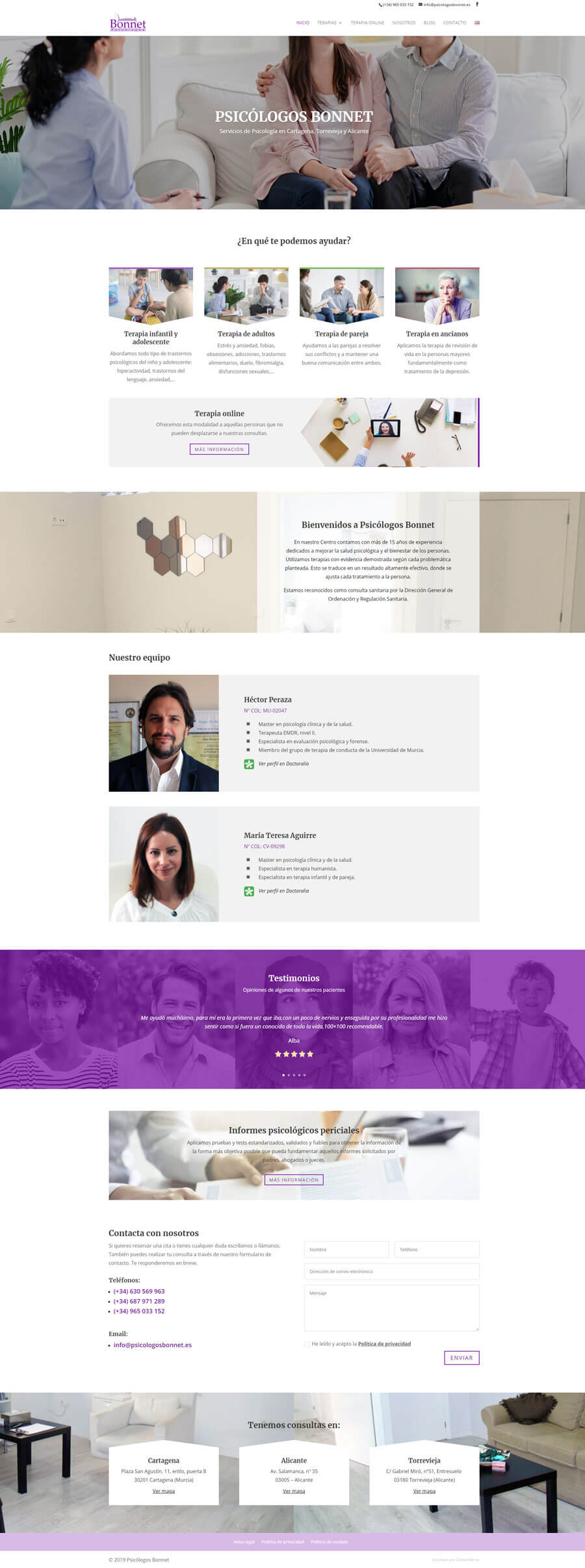 Se trata del sitio web de Psicólogos Bonnet, un gabinete de psicólogos con consultas en Alicante, Cartagena y Torrevieja.